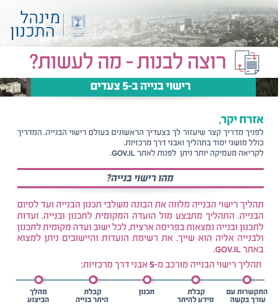 והיא אמורה לעשות סדר ולקצר משמעותית את הזמנים של השלבים עד לקבלת ההיתר.